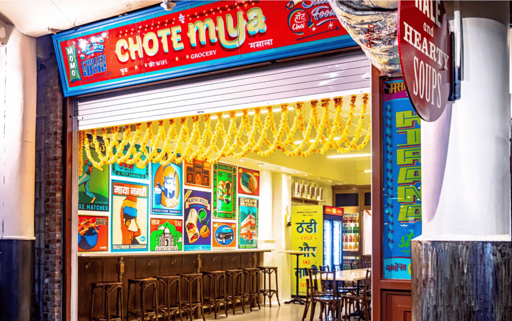 Environmental graphics for an Indian food outpost in Manhattan’s Chelsea Market.